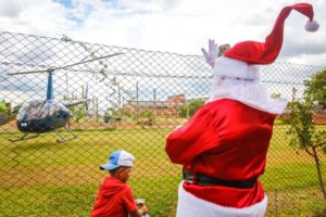 “Olhos de Iago Luz, de 7 anos, brilhavam cada vez mais na medida em que o barulho se um helicóptero de aproximava. Encostado na tela do Centro Social Urbano (CSU), no bairro Mathias Velho, o menino sabia que dentro da aeronave estava o tão esperado Papai Noel.” *